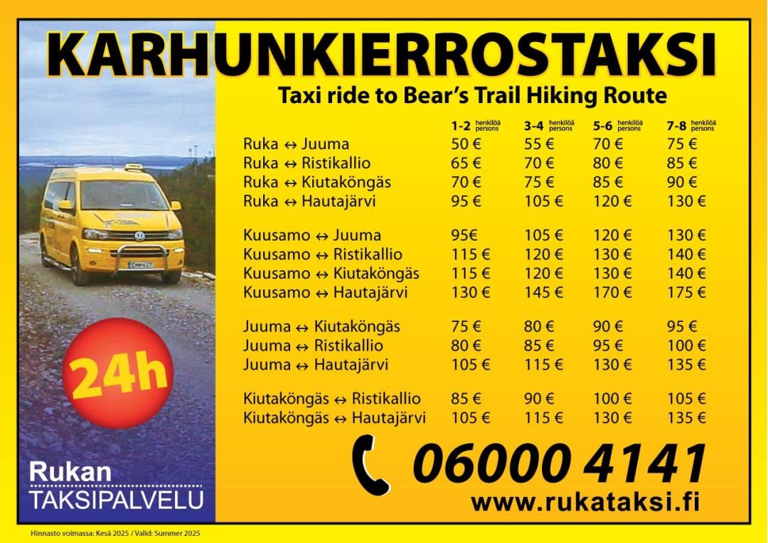 Nopeimmin huoltopalvelun tavoitat numerosta 0400 586 889 tai saapunki@rukataksi.fi.